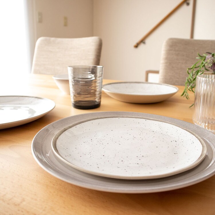 自然な斑点が有る磁器の風合いを模したシックなメラミン食器です