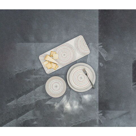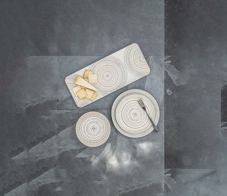 砂漠の曼陀羅をモチーフしたデザイン、シックで落ち着いた風合いのメラミン食器です