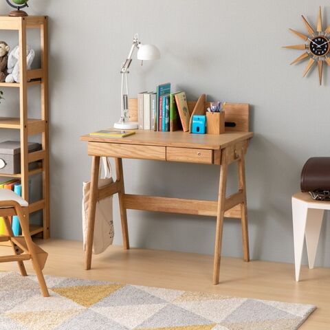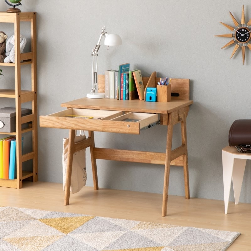 学童用からSOHO利用まで、幅広い場面で使える木質系デスク。