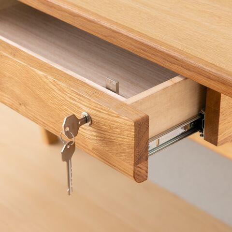 鍵付き引出し、サイドフック、コンセント、ブックエンド、と多機能です。