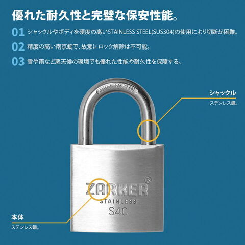 ZARKER ザーカー ステンレススチール製防錆南京錠 コンテナ倉庫 倉庫 外部車両など天候の悪い場所に最適 S40