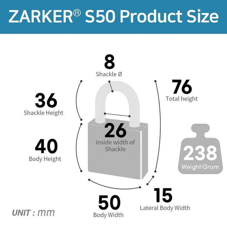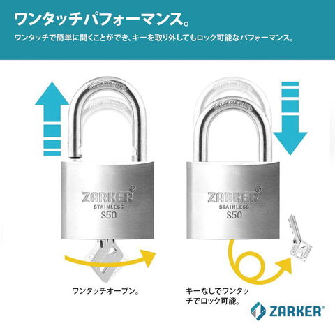 ZARKER ザーカー ステンレススチール製防錆南京錠 コンテナ倉庫 倉庫 外部車両など天候の悪い場所に最適 S50【送料無料】