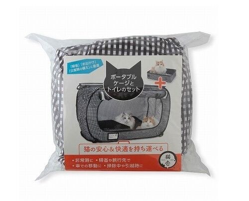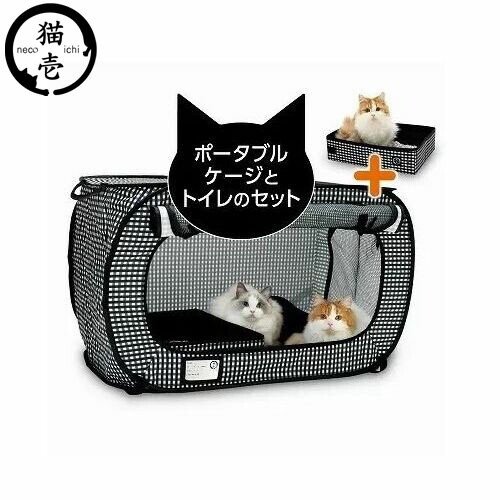 猫壱 ポータブルケージとトイレのセット 黒(1セット) ペット ペット用品 ネコ 旅行 車 おでかけ ピクニック【送料無料】