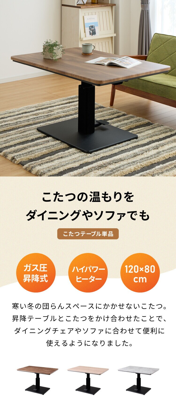 昇降こたつ 幅120 昇降こたつ ハイタイプ 4人掛け 昇降式 ダイニングテーブル 昇降テーブル ヒーター付き 高さ調節 ハロゲンヒーター コタツ こたつテーブル 炬燵 こたつ おしゃれ 昇降式こたつ【送料無料】