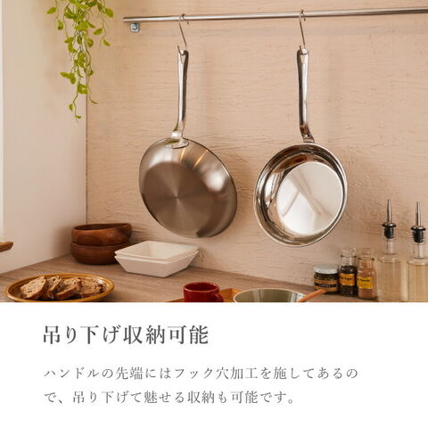 スタイリッシュなステンレスの素材感は、まるで本格イタリアンで使われているフライパンのよう。