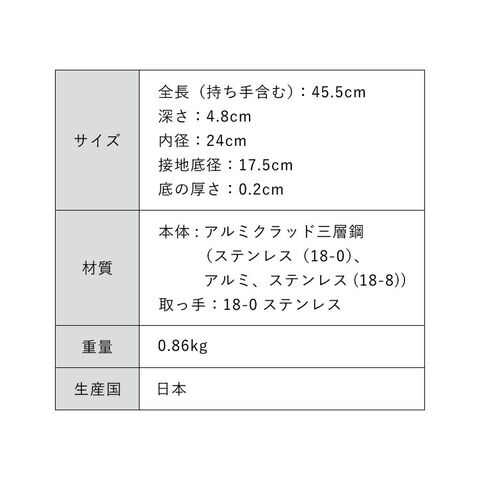 本体:アルミクラッド三層鋼(ステンレス(18-0)、アルミ、ステンレス(18-8))