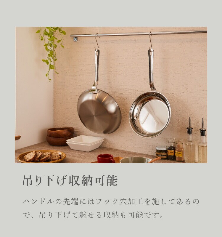 スタイリッシュなステンレスの素材感は、まるで本格イタリアンで使われているフライパンのよう。
