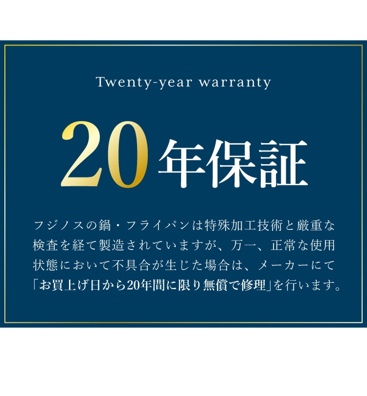 業界でも長期の「メーカー20年保証」で、一生お使いいただけます。