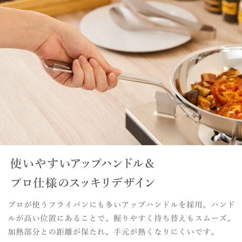プロ仕様のシンプルなデザインのフライパンをご家庭でも気軽にお使いいただけます。