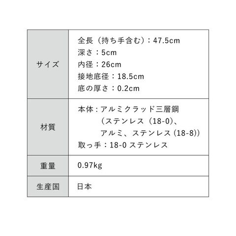 本体:アルミクラッド三層鋼(ステンレス(18-0)、アルミ、ステンレス(18-8))