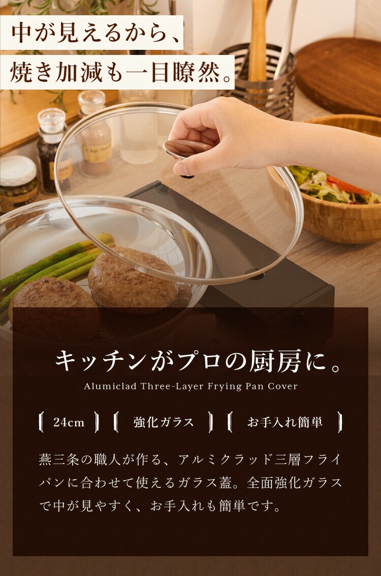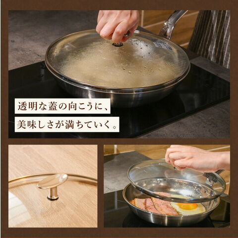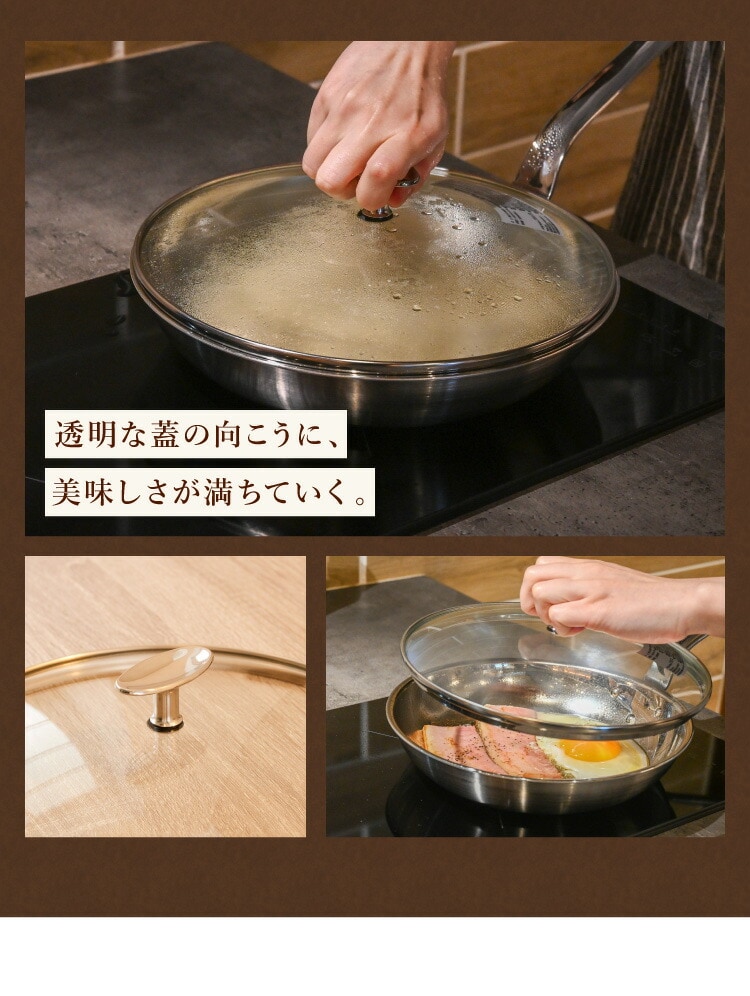 アルミクラッド三層フライパンに合わせて使えるガラス蓋。