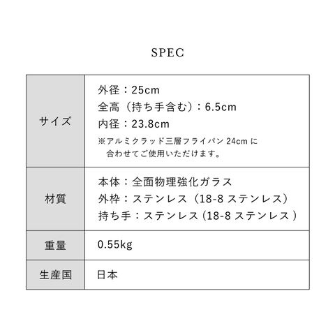 ガラス蓋 24cm 全面物理強化ガラス フライパン 蓋 フタ 単品 おしゃれ フジノス キッチン キッチン用品 ガラス 調理器具 オシャレ シンプル