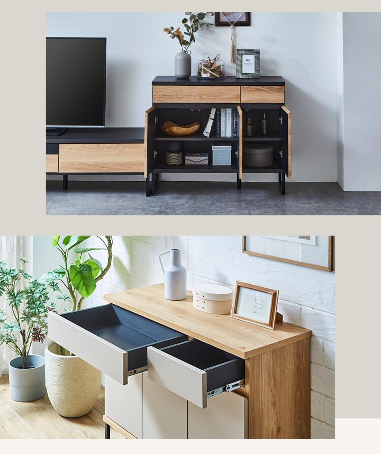 スタイリッシュなバイカラーのスリムタイプキャビネット。