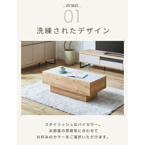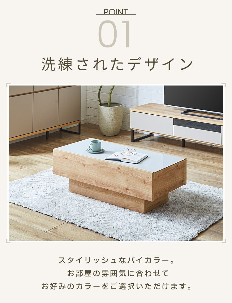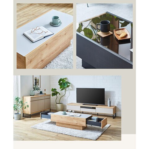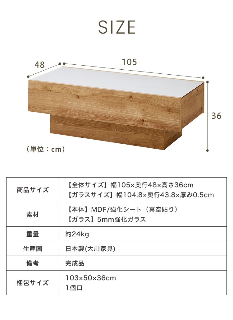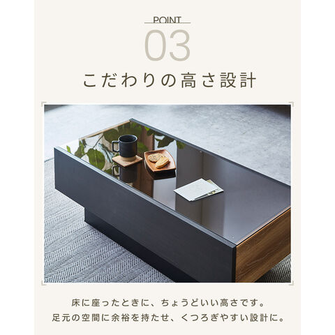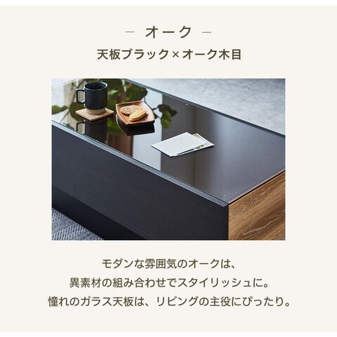 センターテーブル 完成品 幅105 オーク グレー ガラステーブル カフェテーブル ローテーブル おしゃれ 韓国インテリア ブラック モダン 国産 高級感 北欧 ナチュラル PLOM プロム【送料無料】