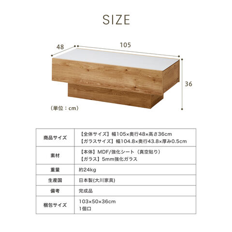 [ガラスサイズ]幅104.8×奥行43.8×厚み0.5cm