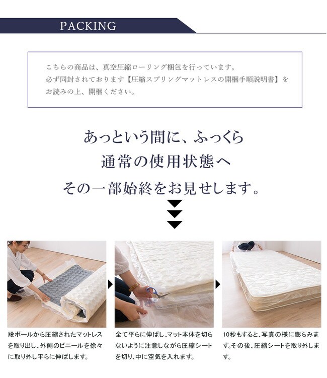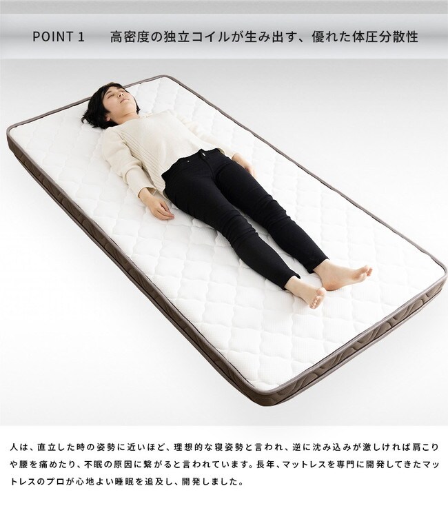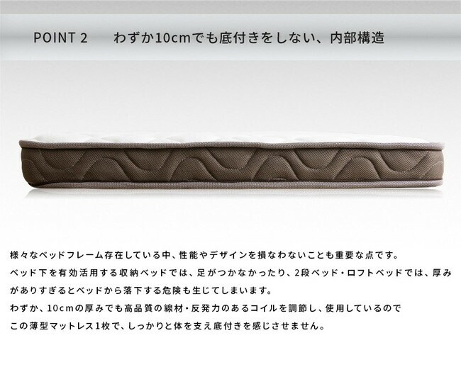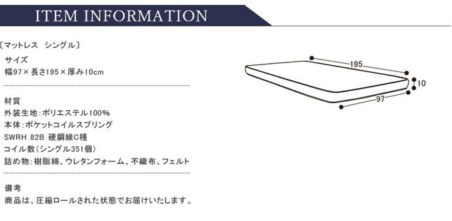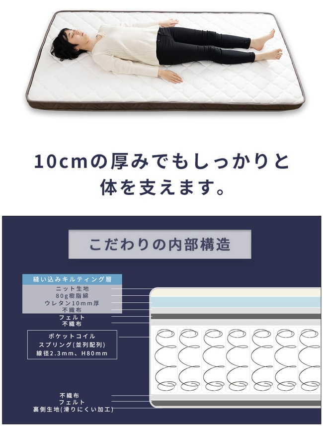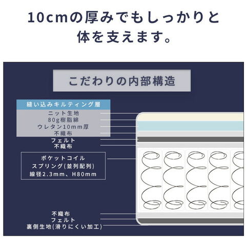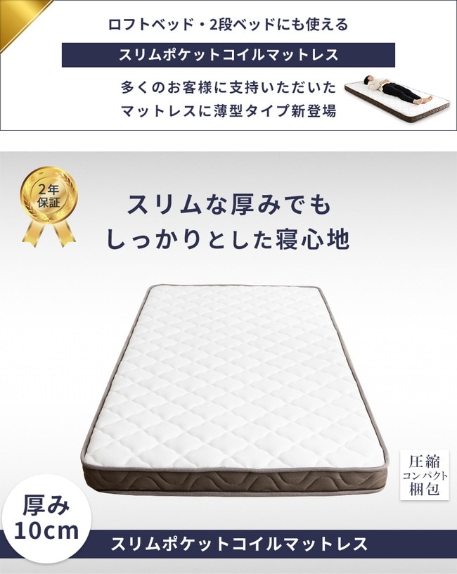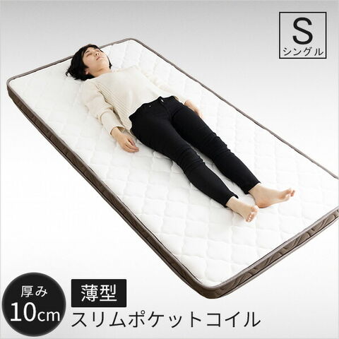薄型ポケットコイルマットレス シングル 厚さ10cm 圧縮梱包 コンパクト配送 ロールマットレス ポケットコイル【送料無料】