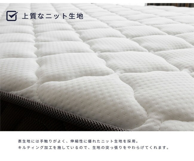 ・伸縮性に富んだ、ニット生地を使用。生地のツッパリ感をやわげます。