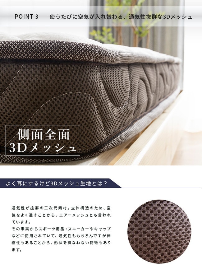 ・使うたびに空気が入れ替わる、通気性抜群な3Dメッシュ。