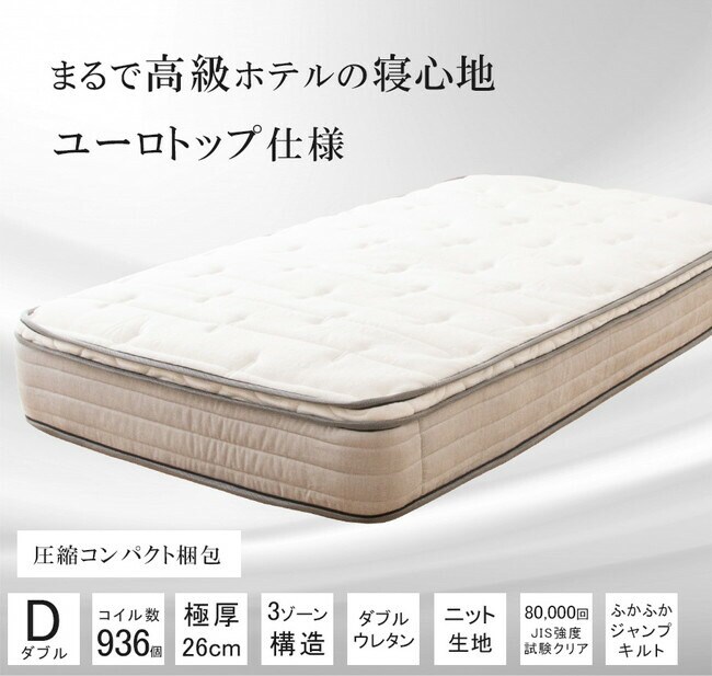 ユーロトップポケットコイルマットレス ダブル コイル数936個 極厚26cm プロファイルウレタン入り 圧縮梱包 コンパクト配送【送料無料】