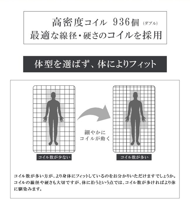 ・高密度コイルが生み出す、優れた体圧分散性。