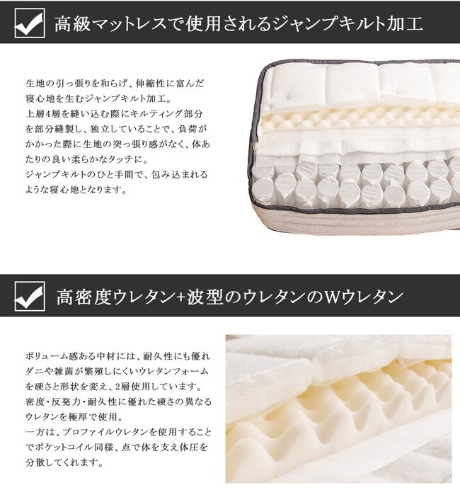 ・ジャンプキルト加工を施した最上級グレードマットレス。