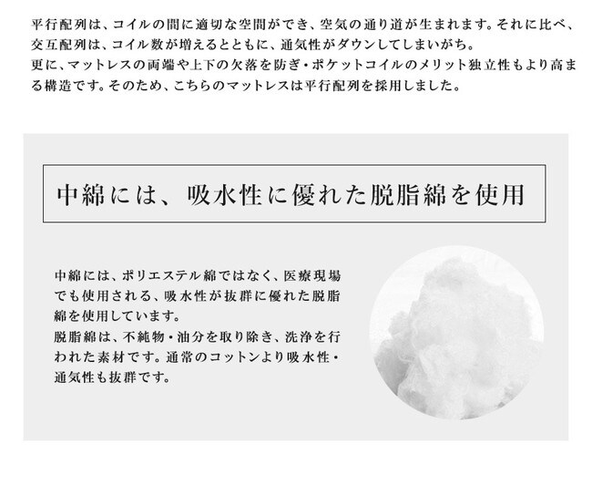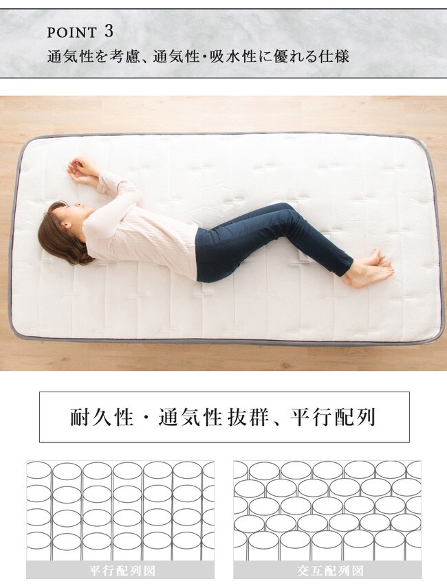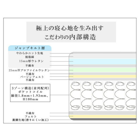 ・選び抜かれた2種類のコイルを使用、3ゾーン構造マットレス。