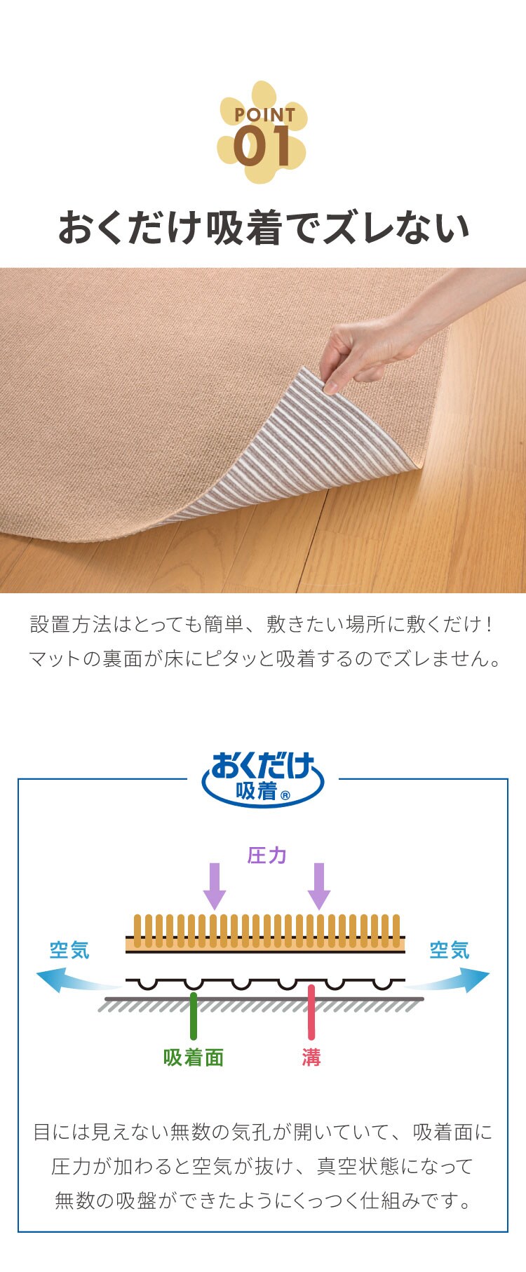 ・マットの裏面が床にピタッと吸着するのでズレません。