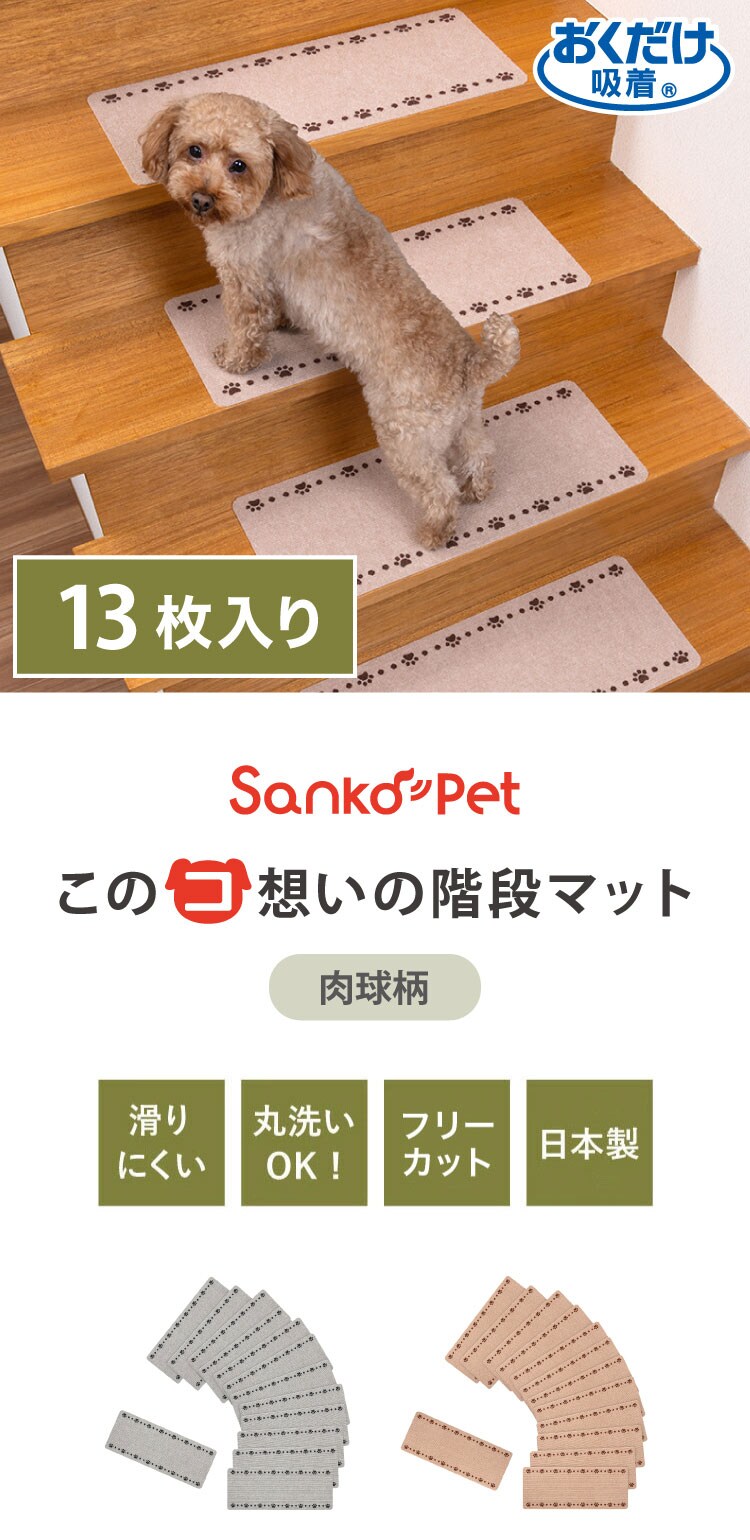 SankoPet 日本製 ペット用 階段マット 55×21cm 13枚入り 滑り止め すべり止め ズレない 滑落防止 撥水 はっ水 洗える 洗濯可 床暖 国産 階段用 マット 犬用 猫用 犬 猫 サンコーペット【送料無料】