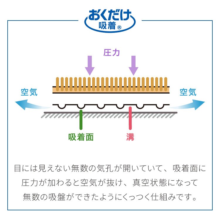 ・マットの裏面が床にピタッと吸着するのでズレません。