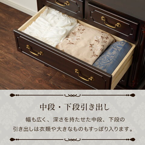チェスト 幅75cm マホガ二ー材 完成品 ブラウン 高級感 エレガント ブラウン ミニチェスト ローチェスト タンス キャビネット 収納 天然木 木製 引き出し 大容量 コンパクト 省スペース 上品 優雅【送料無料】