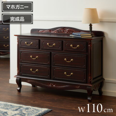 チェスト 幅110cm マホガ二ー材 完成品 ブラウン 高級感 エレガント ブラウン ミニチェスト ローチェスト タンス キャビネット 収納 天然木 木製 引き出し 大容量 コンパクト 省スペース 上品 優雅【送料無料】