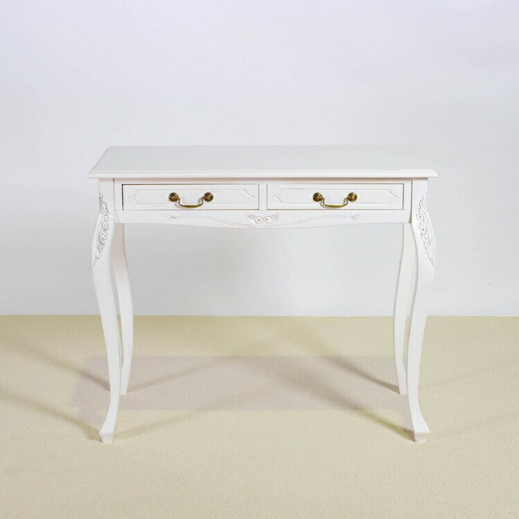 コンソールテーブル 幅90cm マホガ二ー材 完成品 ホワイト 高級感 エレガント ホワイト パソコンデスク 机 テーブル おしゃれ 北欧 インテリア コンソール サイドテーブル カウンターテーブル【送料無料】