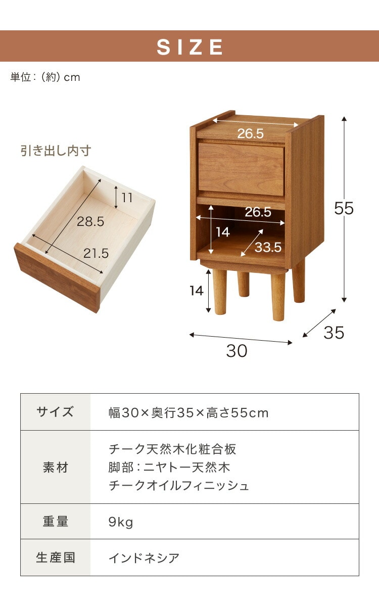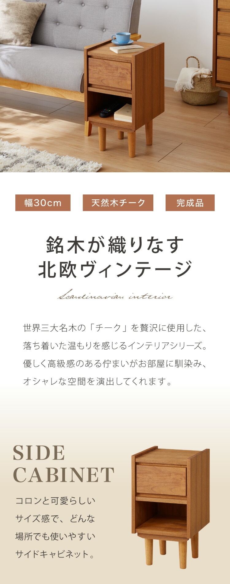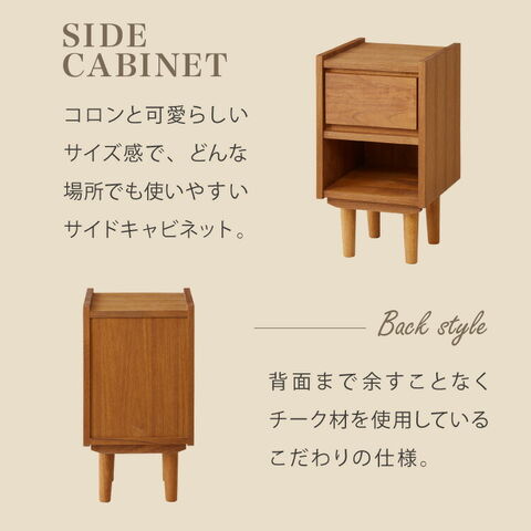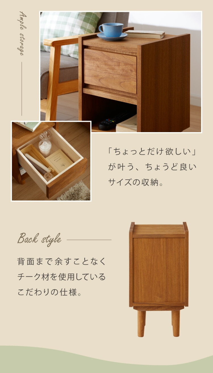 サイドキャビネット 幅30cm 天然木 チーク材 完成品 高級感 オイル仕上げ 脚付き 収納家具 お洒落 モダン 木製 シンプル ヴィンテージ アンティーク ナイトテーブル ライン ラインシリーズ【送料無料】