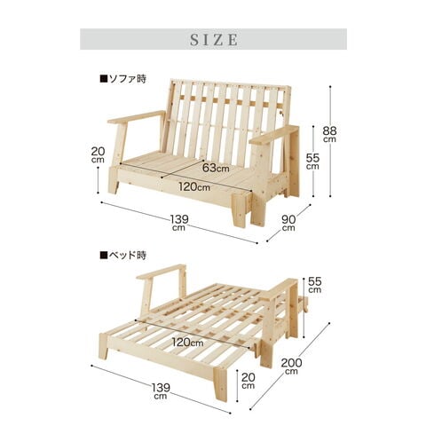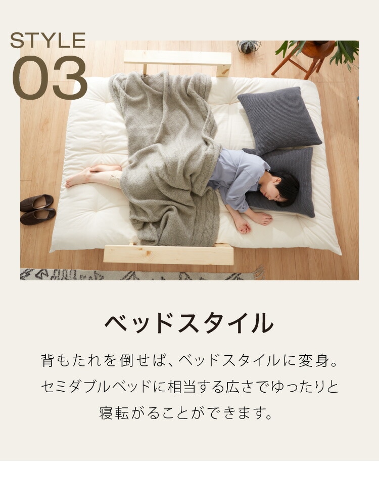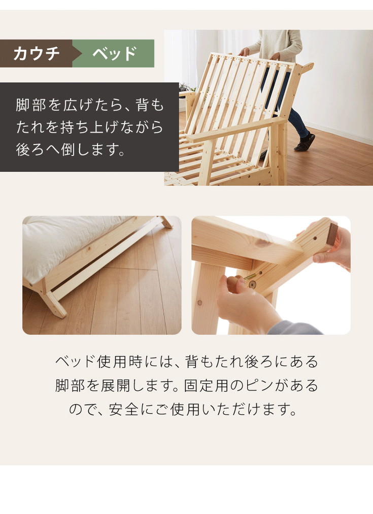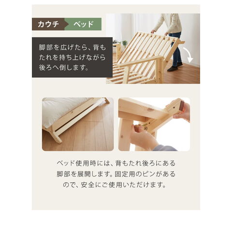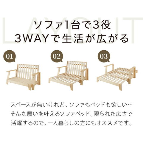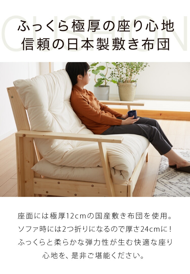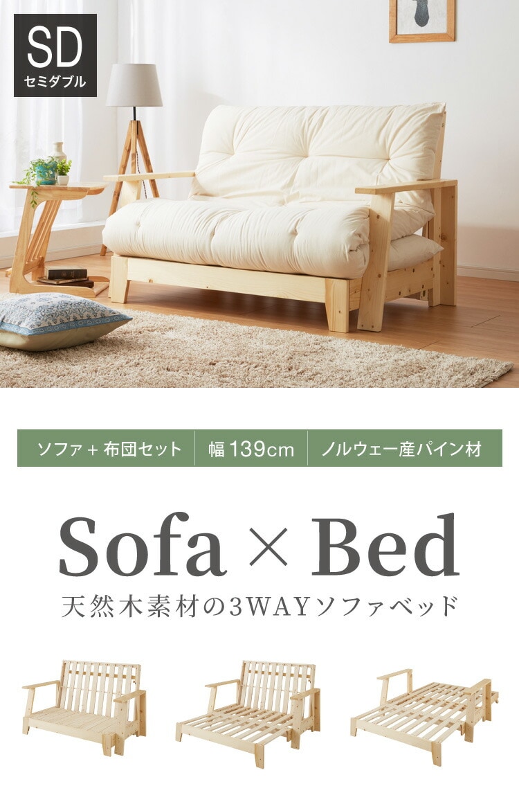ソファベッド 3WAY 専用布団セット セミダブル 天然木 ベッド カウチソファ 2Pソファ 2人掛け パイン材 マルチソファベッド 伸長式 すのこベッド 背もたれ 肘掛け おしゃれ 北欧 一人暮らし 新生活【送料無料】