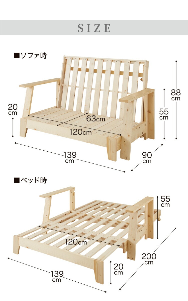 ソファ時は2Pタイプ。ベッド時はセミダブルサイズ。
