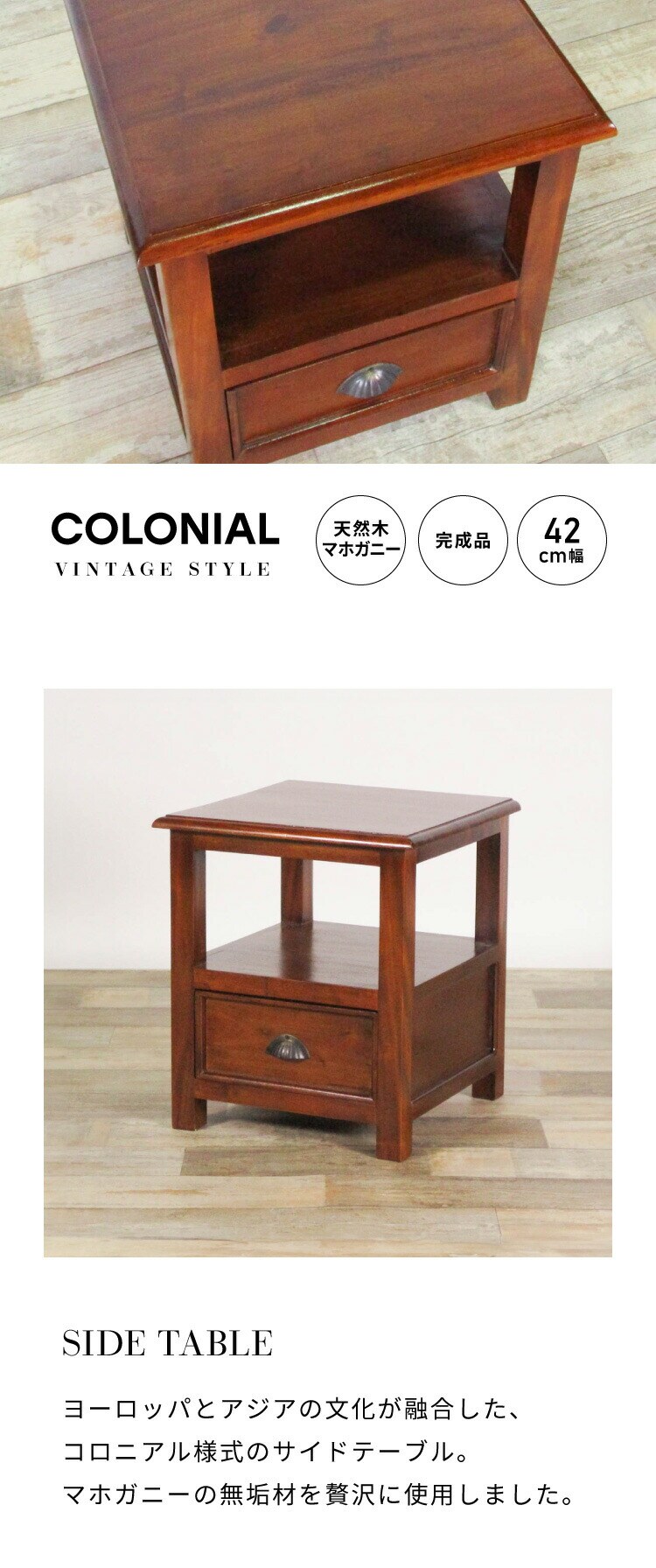 サイドテーブル 幅42cm 高級品 北欧 ヴィンテージ 天然木 マホガ二ー 完成品 アンティーク モダン センターテーブル ローテーブル 家族 リビング ダイニング 寝室 コロニアル【送料無料】