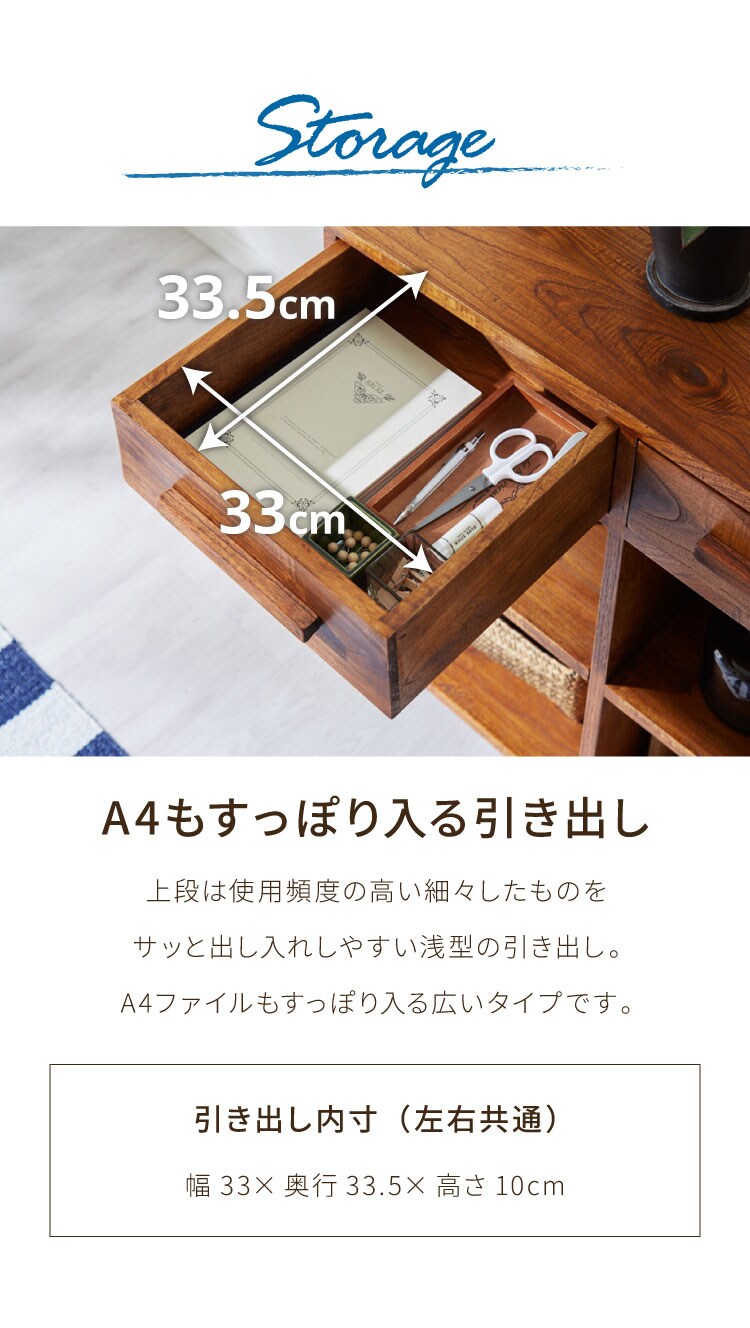 上引き出し収納×2:幅33×奥行33.5×高さ10cm