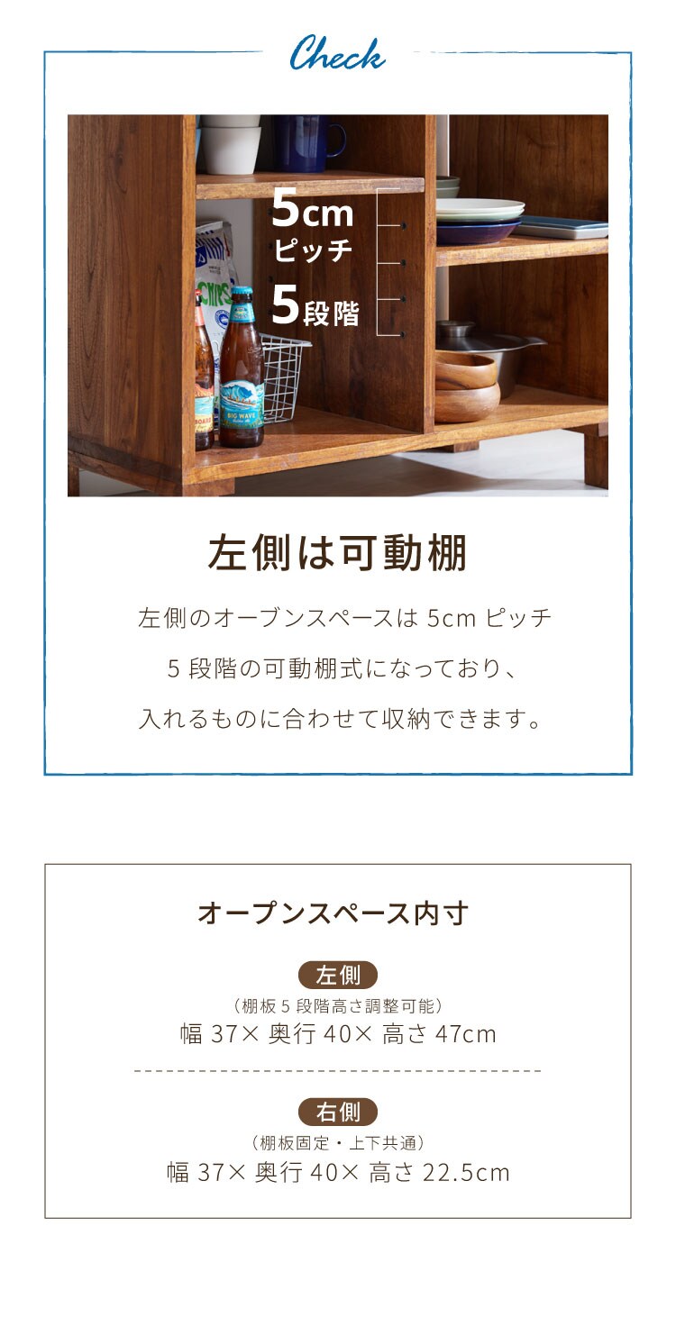 左側収納棚(棚板1枚5段階高さ調整可能):幅37×奥行40×高さ47cm