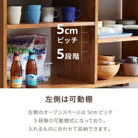 ・高さ調整可能な可動棚付きの左収納スペース