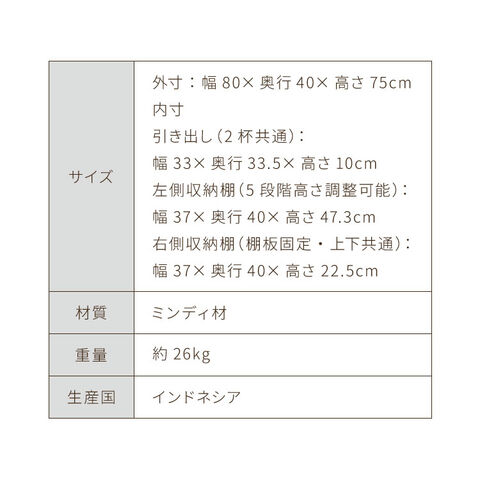 外寸:幅80×奥行40×高さ75cm