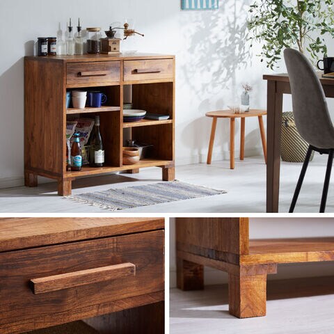本体には、美しい木目と深みのある色合いが特徴のミンディ無垢材を使用。