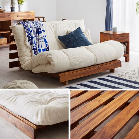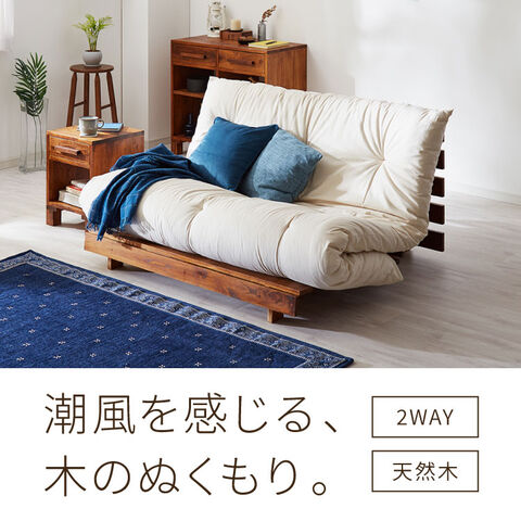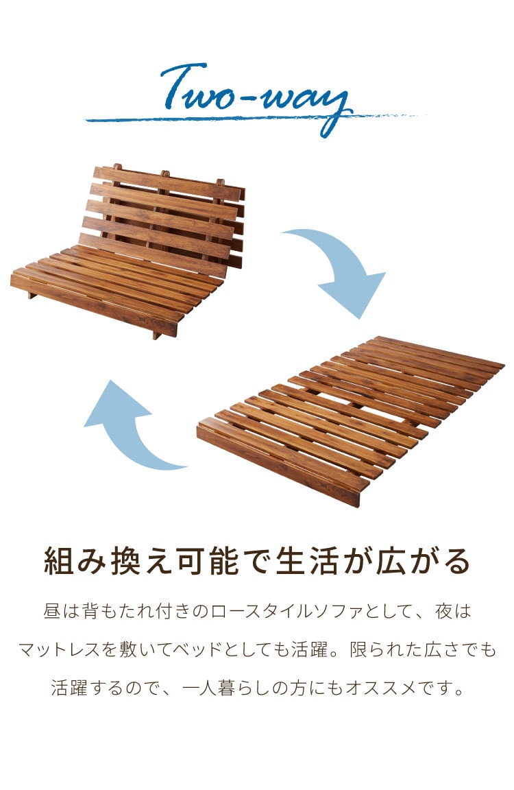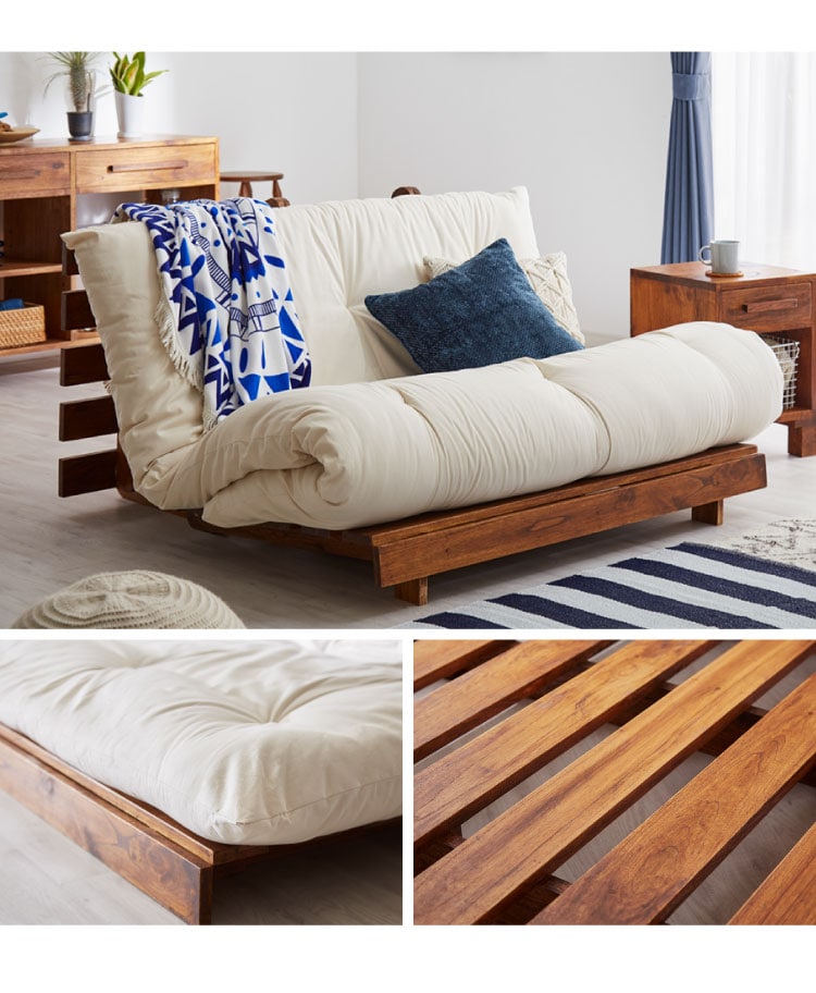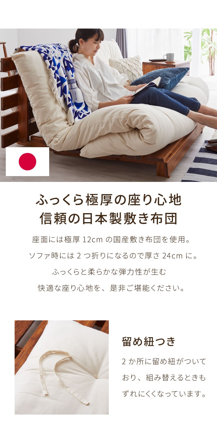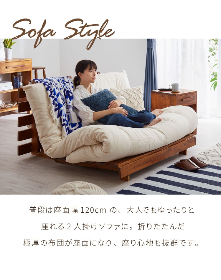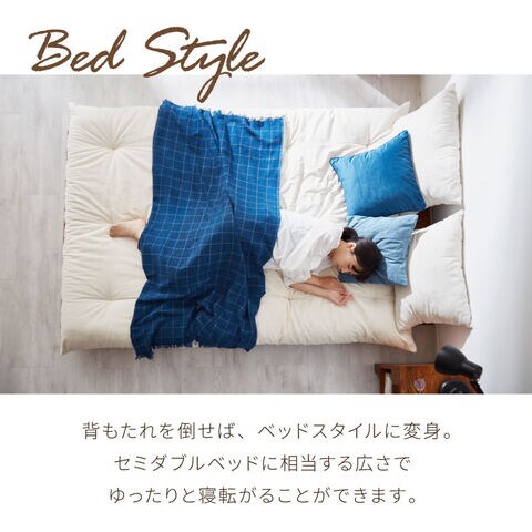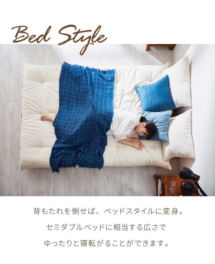 昼は背もたれ付きのロースタイルソファとして、夜はマットレスを敷いてベッドとしても活躍。