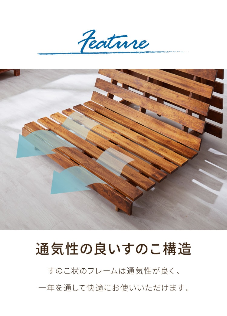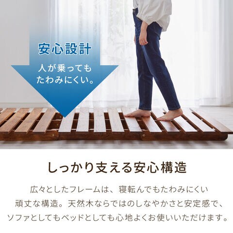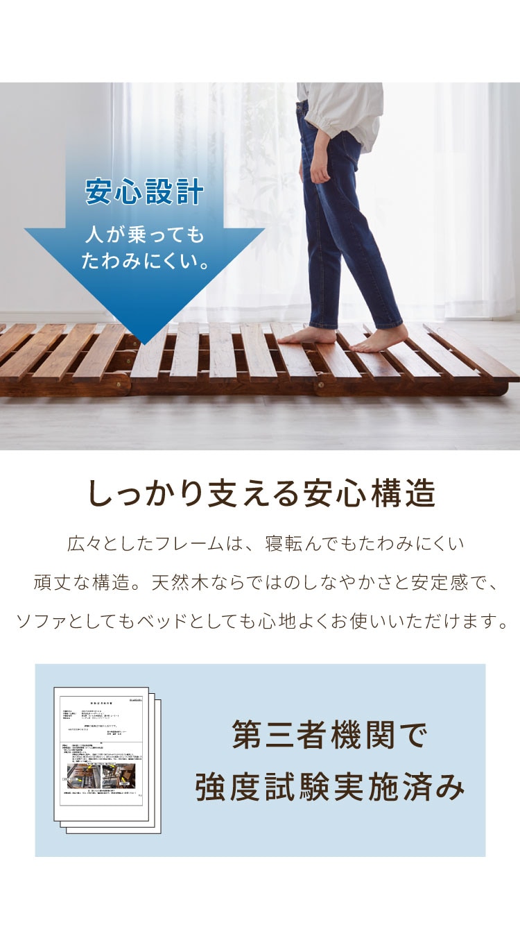 寝転んでもしっかり身体を支える頑丈なフレーム設計で、木のしなやかさと安定感を感じられます。