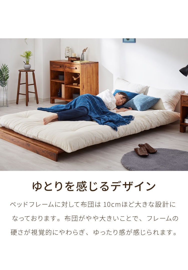 広々としたフレームは、寝転んでもたわみにくい頑丈な構造。