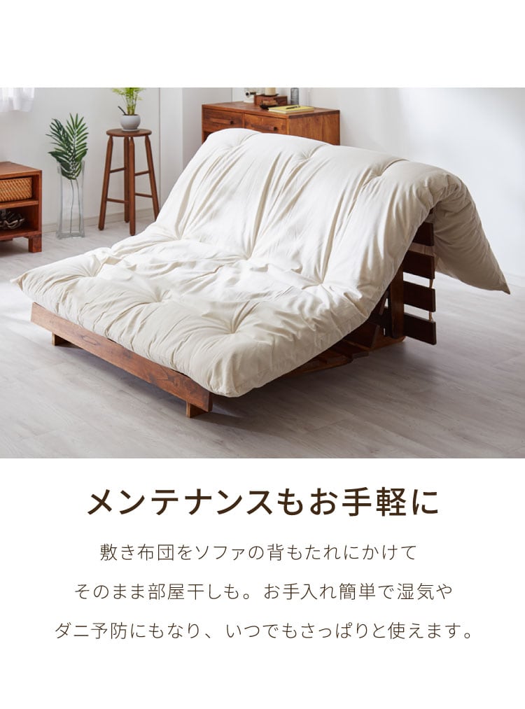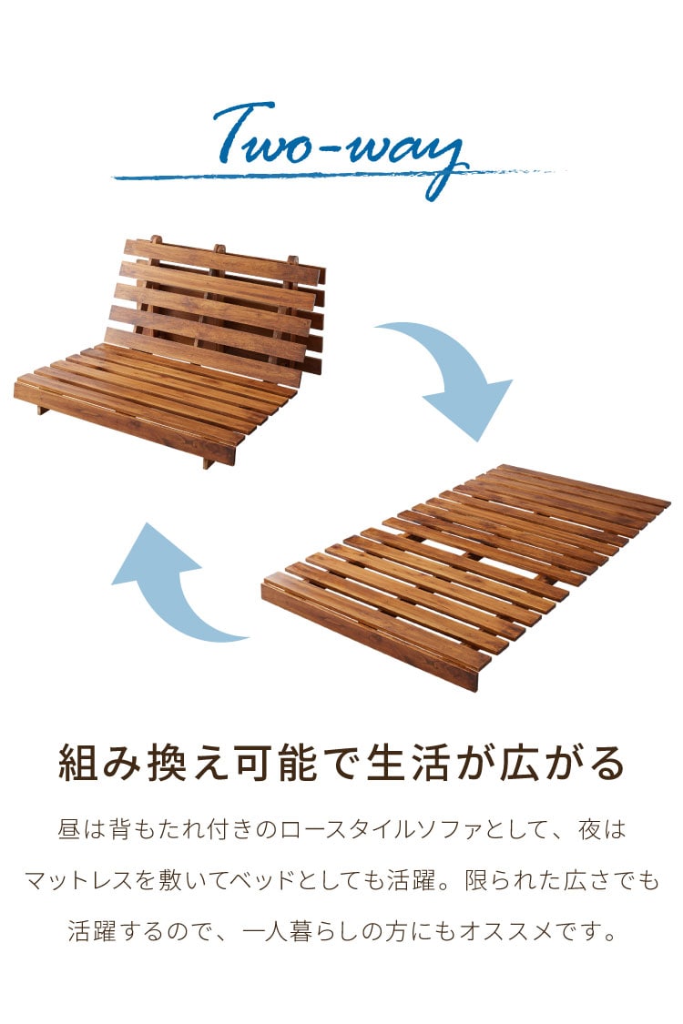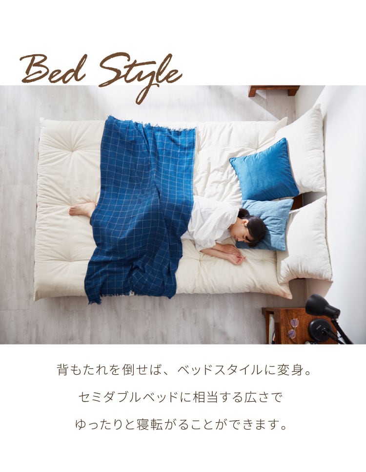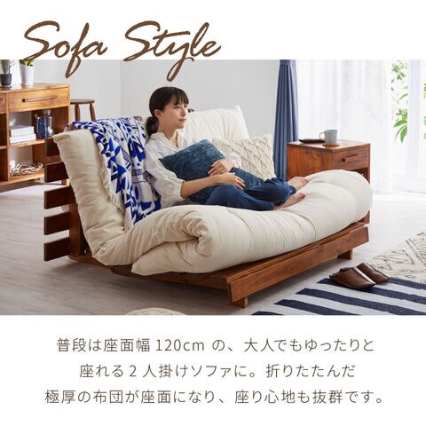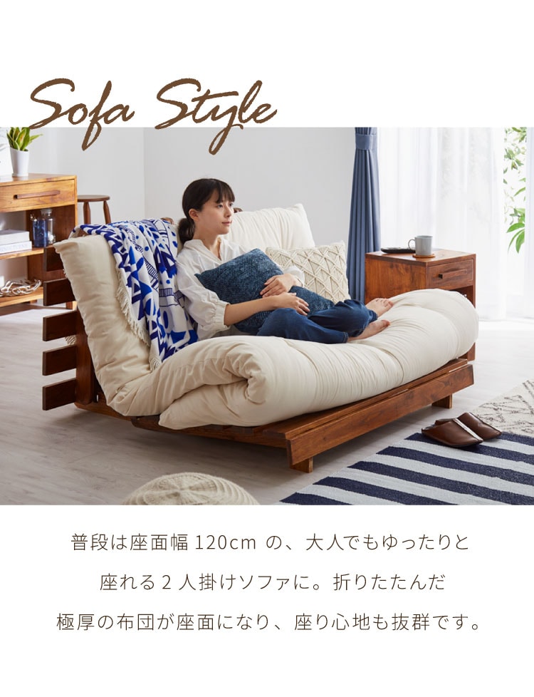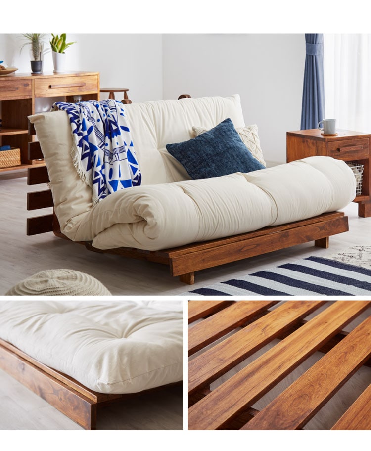天然木ならではのしなやかさと安定感で、ソファとしてもベッドとしても心地よくお使いいただけます。