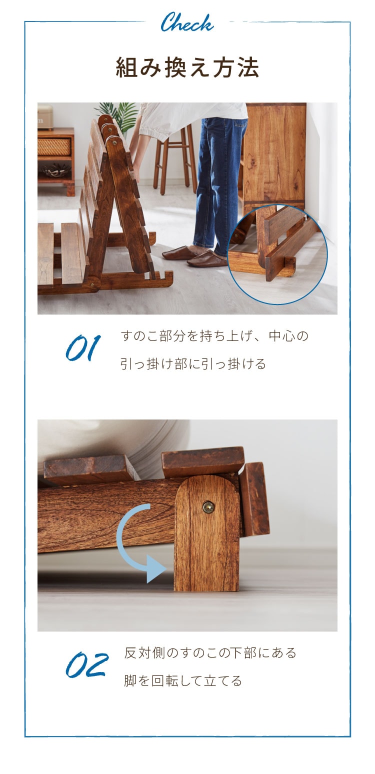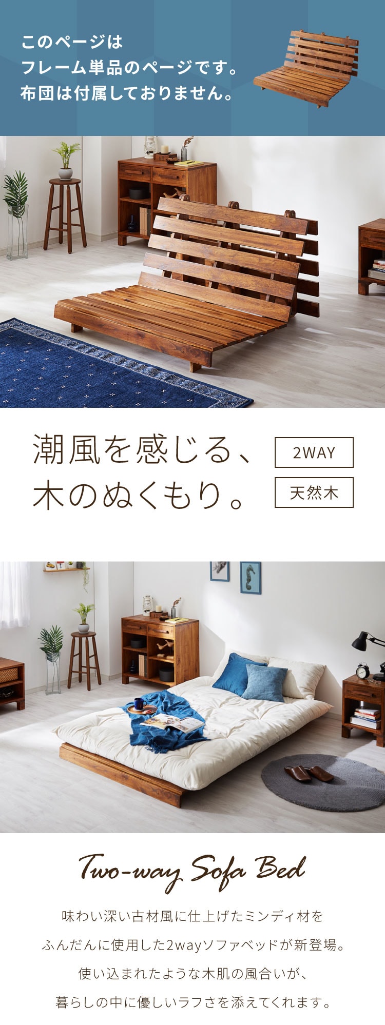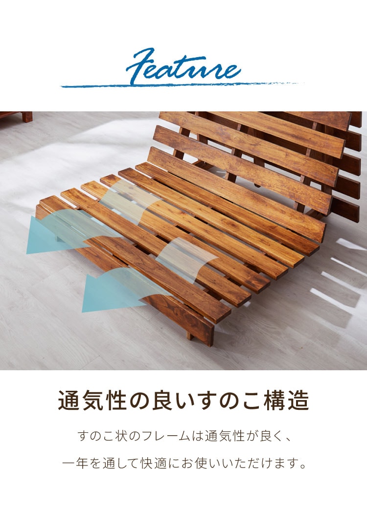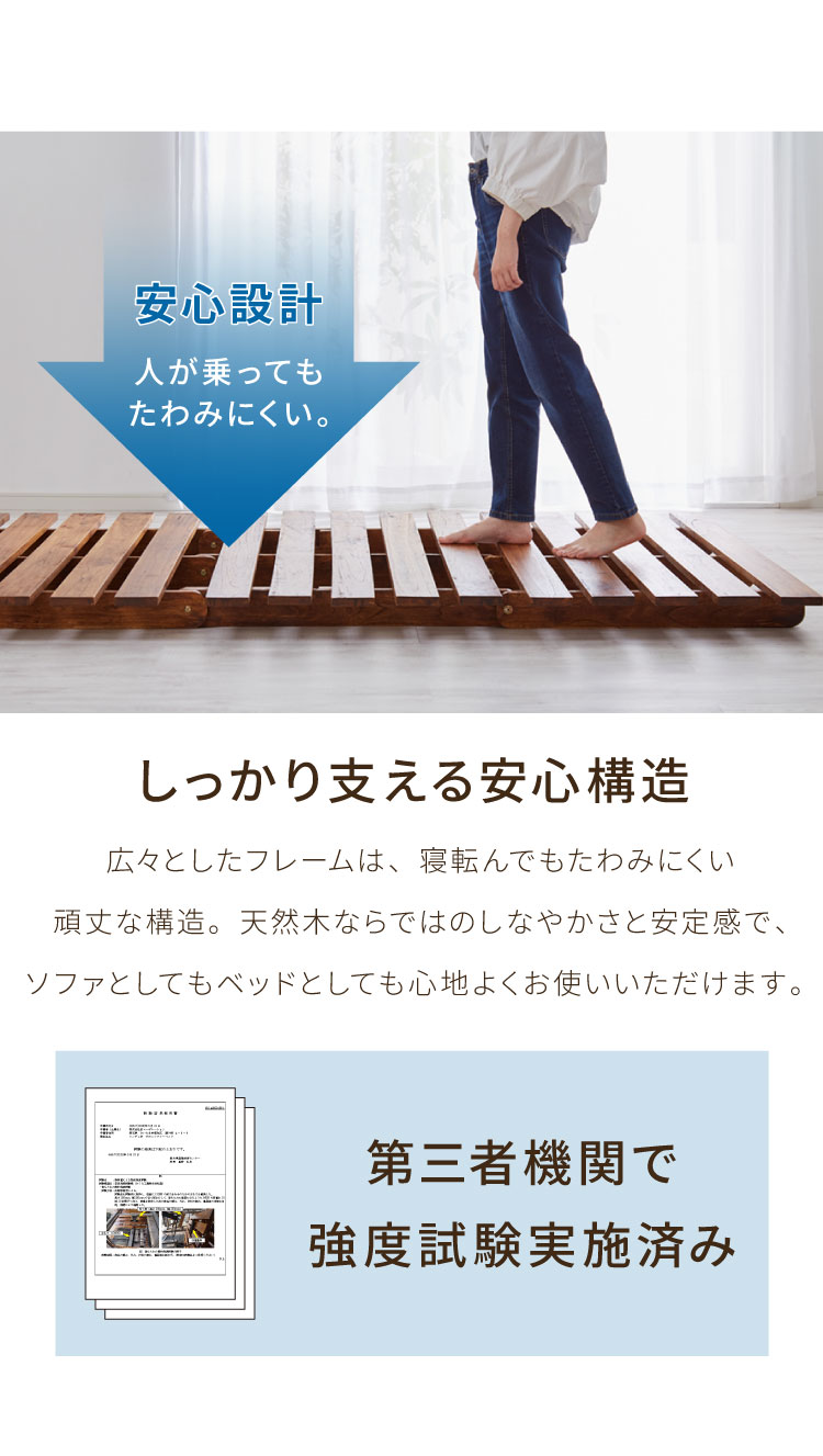 天然木ならではのしなやかさと安定感で、ソファとしてもベッドとしても心地よくお使いいただけます。