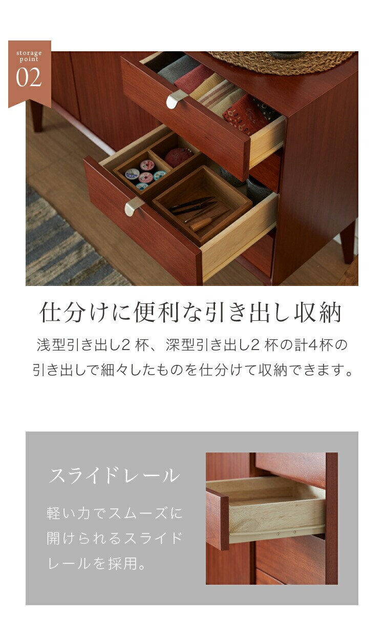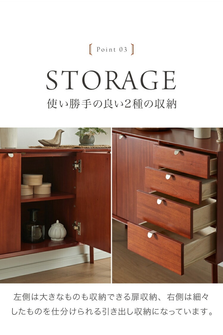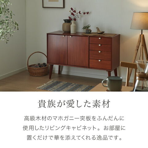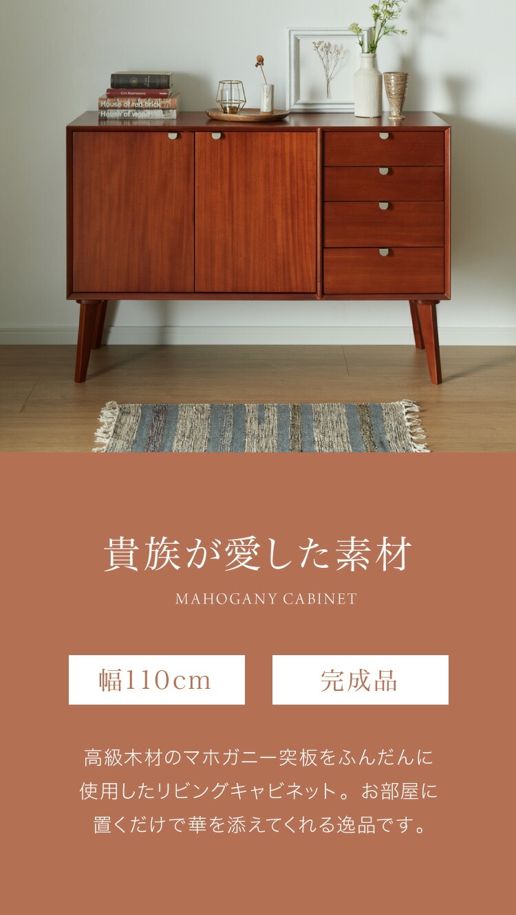 キャビネット 幅110cm 北欧 ヴィンテージ 天然木 マホガニー 完成品 サイドボード リビングボード 収納家具 お洒落 モダン ブラウン 木製 フリーボード ローボード 高級感 AVA アヴァ【送料無料】