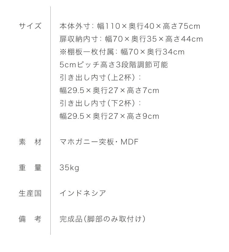 本体外寸:幅110×奥行40×高さ75cm