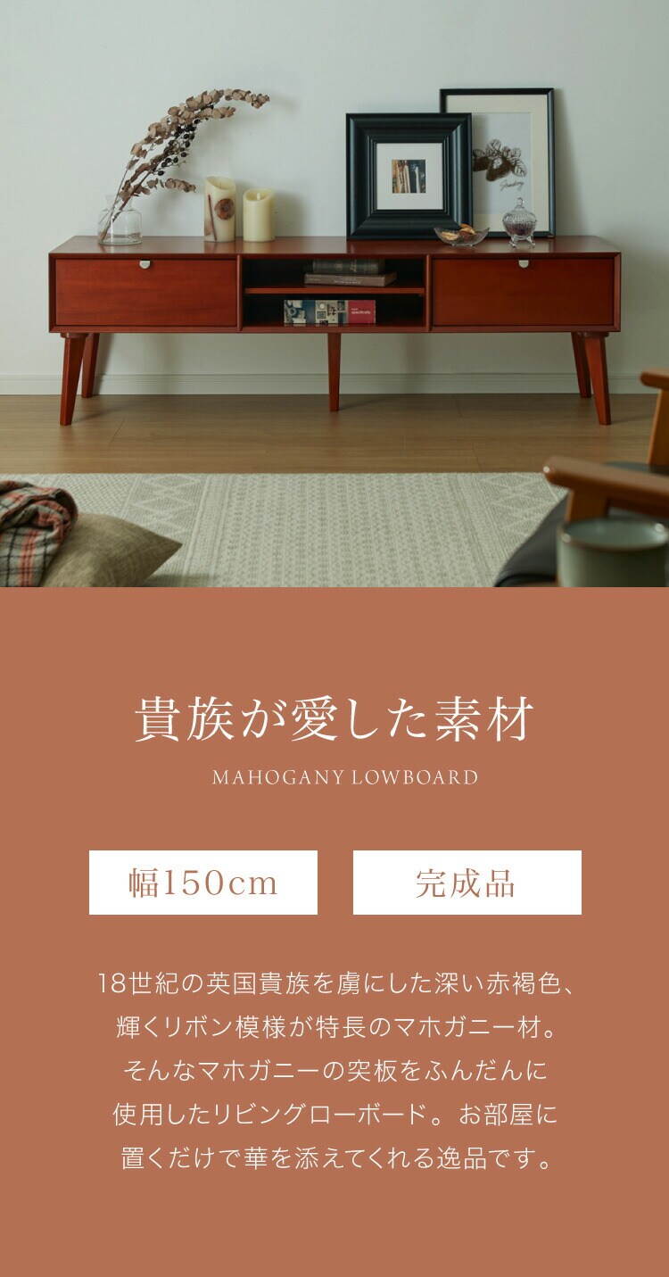 テレビ台 幅150cm 北欧 ヴィンテージ マホガニー材 完成品 収納家具 スライドレール式 コンパクト テレビボード テレビラック TV台 おしゃれ お洒落 モダン 高級感 木製 突板 収納 棚 AVA アヴァ【送料無料】