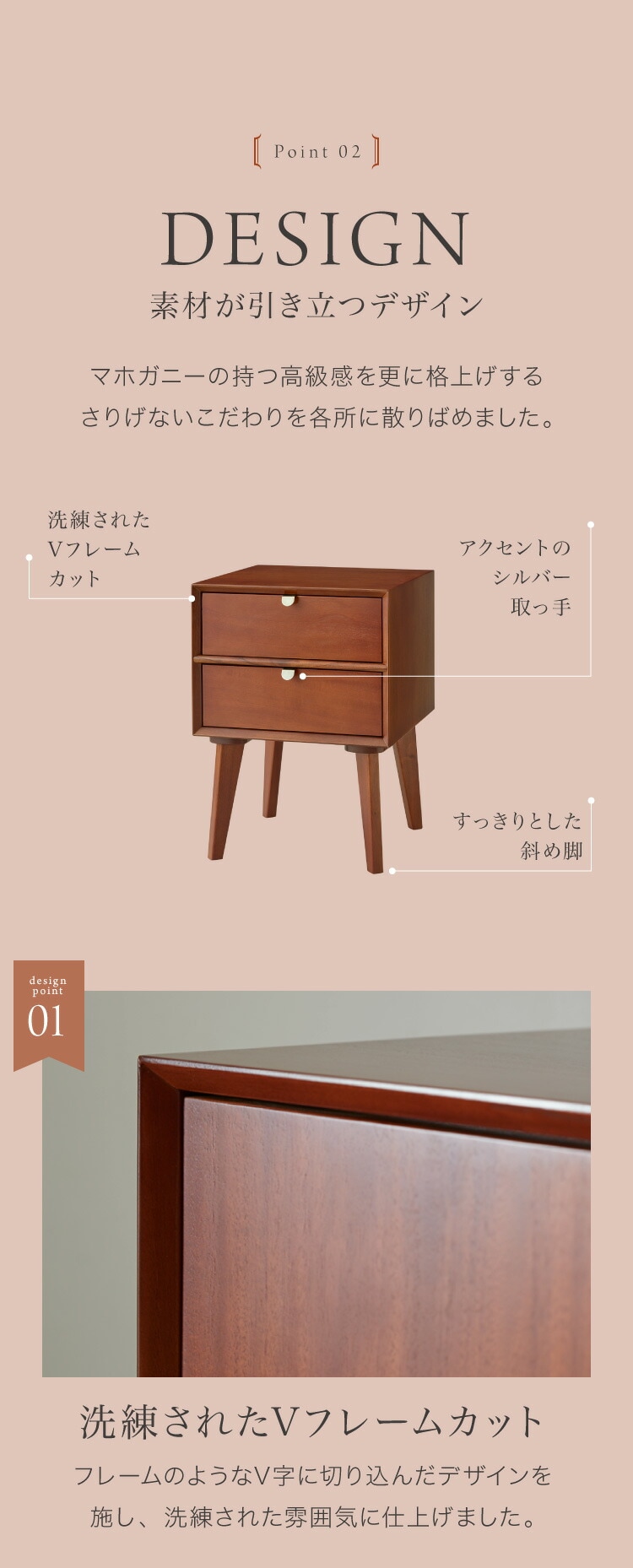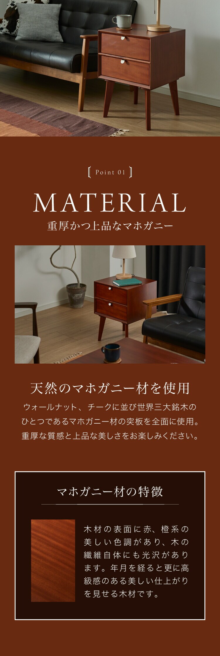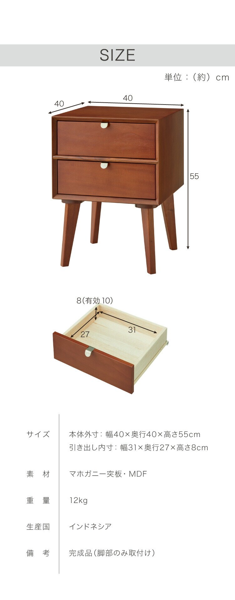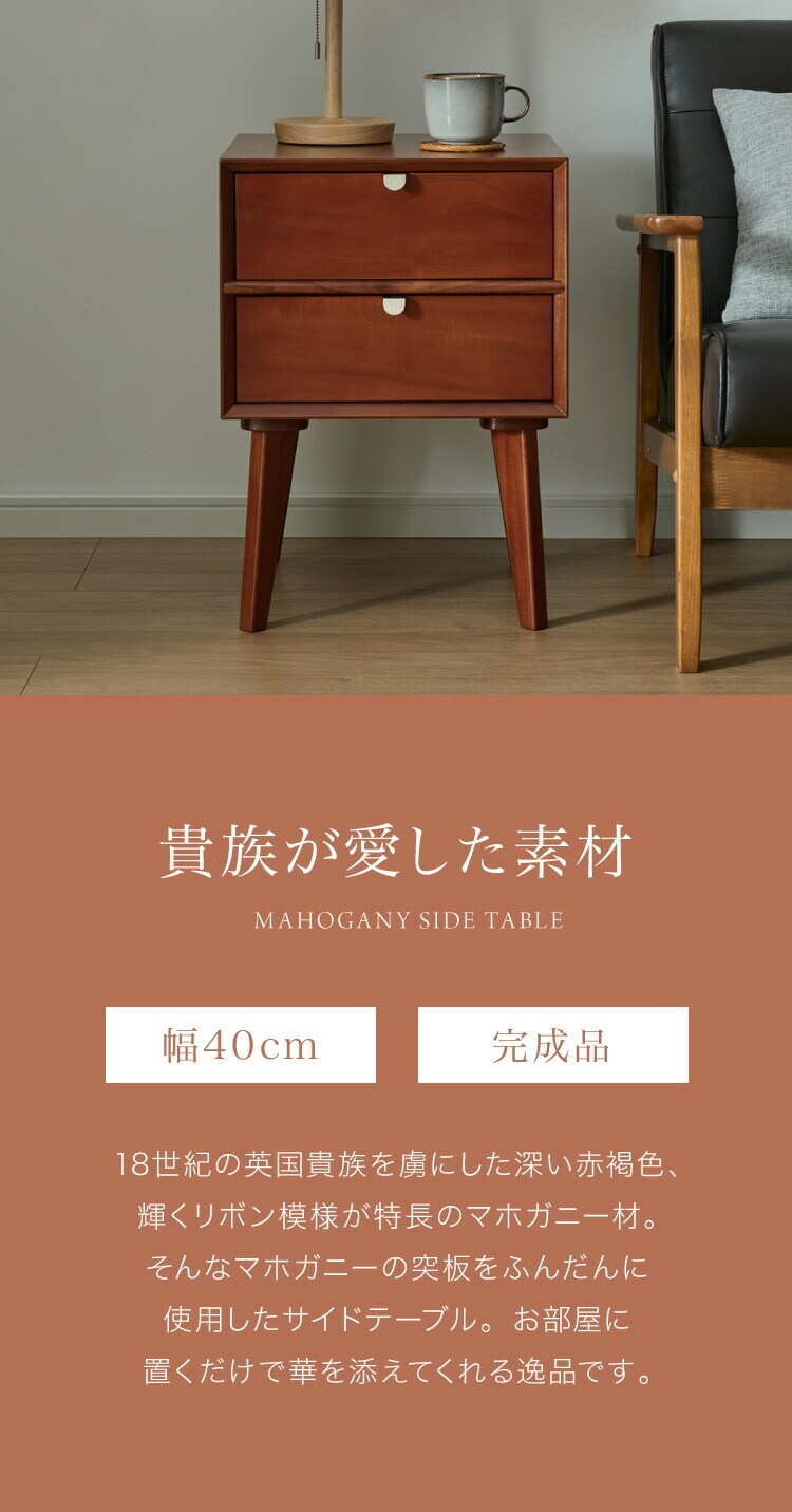 サイドテーブル 幅40cm 北欧 ヴィンテージ 天然木 マホガニー 完成品 サイドボード ナイトテーブル 収納家具 おしゃれ モダン 木製 コーヒーテーブル 高級感 ソファサイド ベッドサイド AVA アヴァ【送料無料】